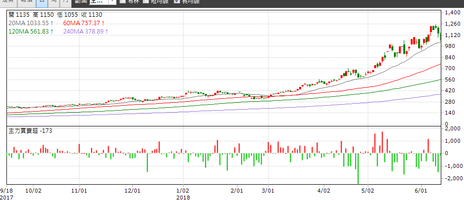 (國巨股價一路創新高,站上千元成為新科股后。圖翻攝自盤中警報器)