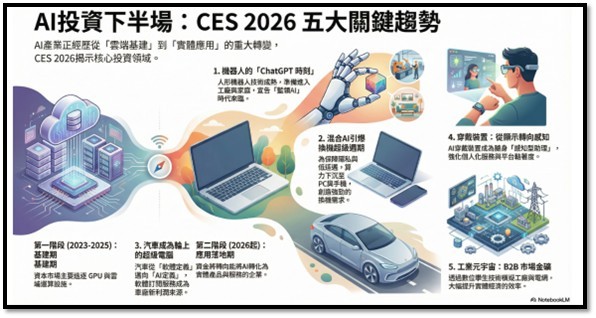 2026-0111產業隊長張捷盤勢分析與產業趨勢:CES展閃亮登場AI派對尚未結束,費半指數創新高!下週台積電法說將登場!