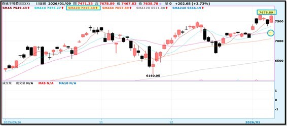 費半指數本週CES展帶動之下,指數創歷史新高持續多頭格局!