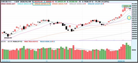 本週加權指數出天量創新高攻上3萬點之上,外資投信卻聯手賣超台股,月線不破仍偏多看待。大盤本週融資增加48億整體融資目前3514億。