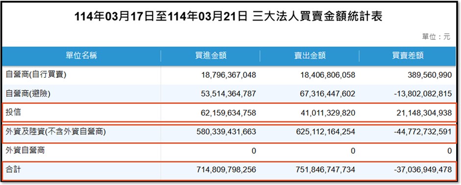 - 本週法人買賣超:本週三大法人合計賣超台股370億,外資賣超447億,投信買超211億,自營商(非避險)買超3億、避險賣超138億。