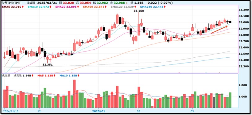 - 台幣走勢: 美國10年期公債殖利率小幅回落至4.25%,外資本週持賣台股資金匯出,台幣匯率貶值。