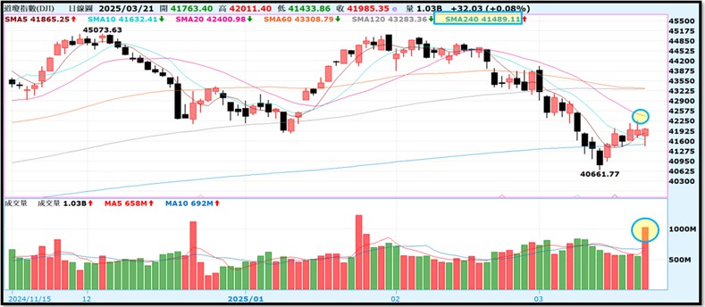 - 本週GTC大會未能帶動盤勢反彈,反倒Fed會議後迎來一波反彈,但市場仍擔心關稅政策會造成美國停滯性通膨。所幸川普釋出保持彈性言論緩解市場擔憂,道瓊指數聞訊反彈!