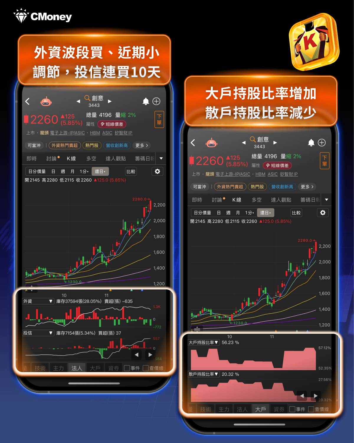 現在就開啟《籌碼K線》- 全台最專業股市分析軟體,觀察最新的籌碼動向,才不會錯過即時行情!