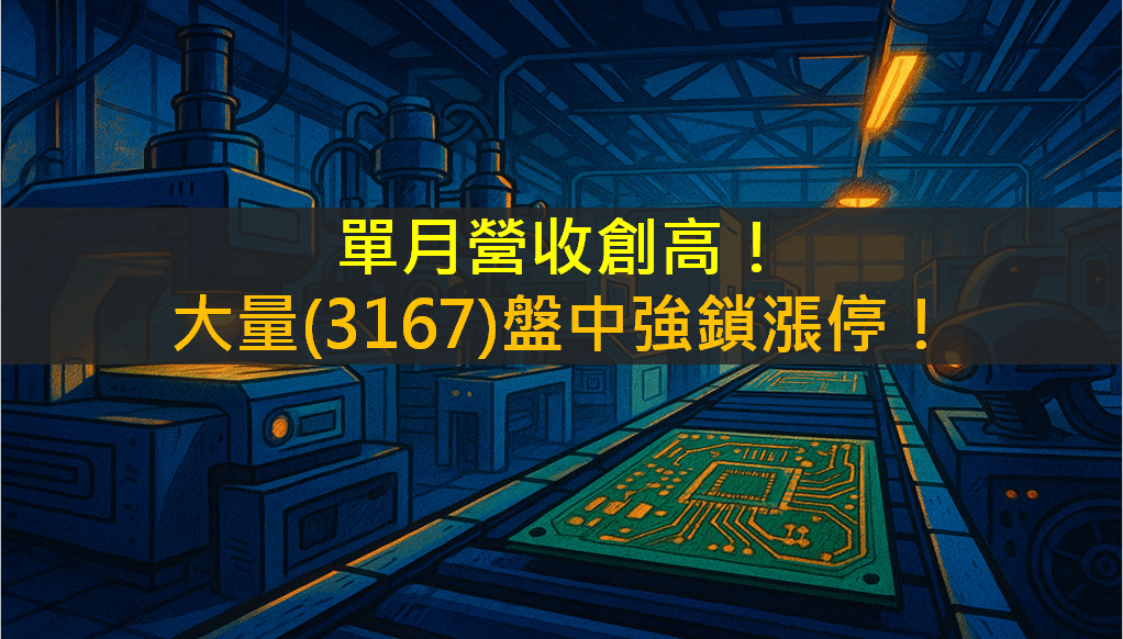 單月營收創新高!大量(3167)盤中強鎖漲停!