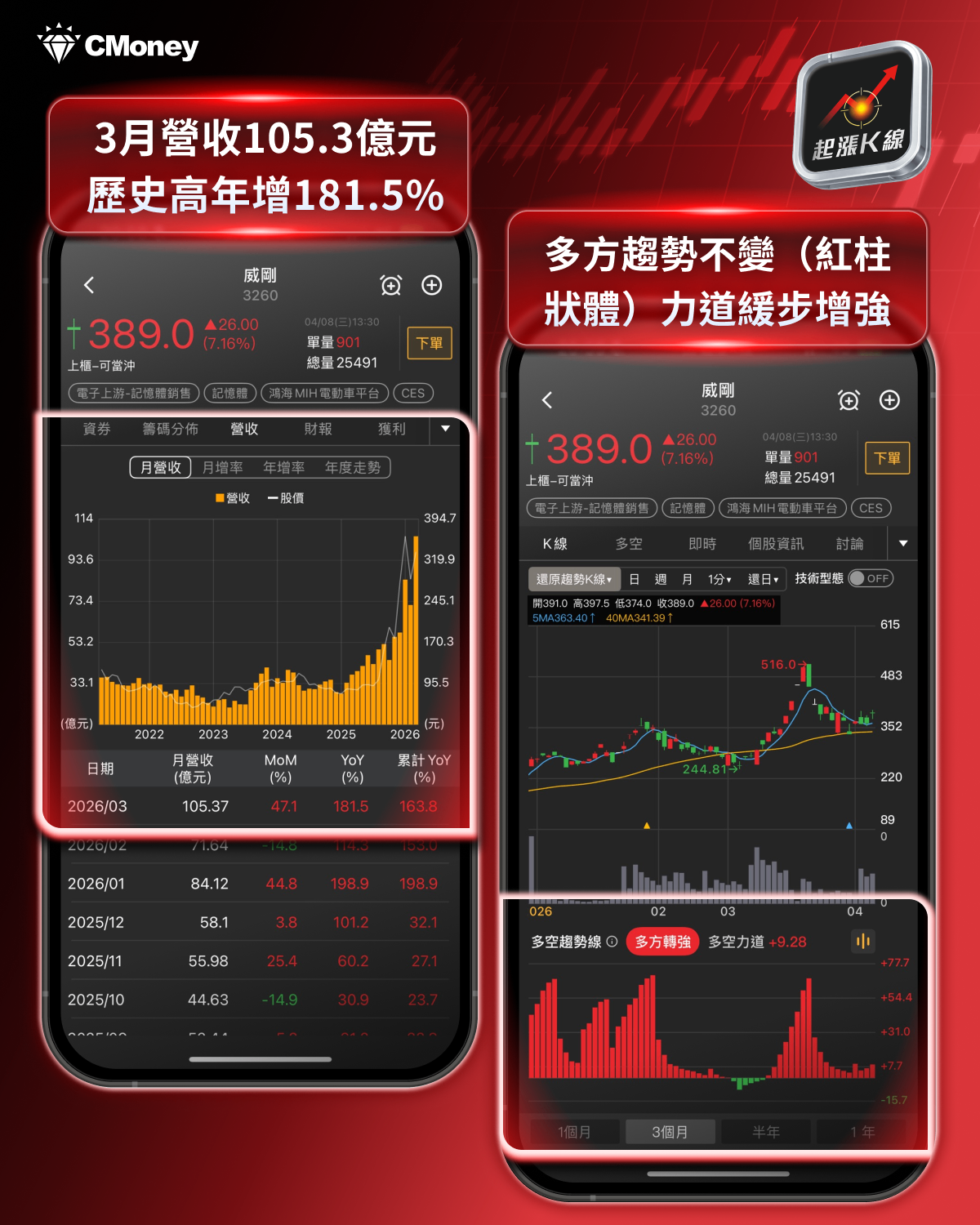 2026年記憶體產業的缺貨潮,是AI需求狂飆與供給瓶頸交織的「超級週期」。近期股價雖因獲利了結回落,讓不少投資人感到擔憂,不過最新的3月營收,仍展現出驚人爆發力,證明基本面底氣依然強勁。《起漲K線》今天就帶你來看看究竟是趨勢反轉,還是長線的布局機會浮現呢?