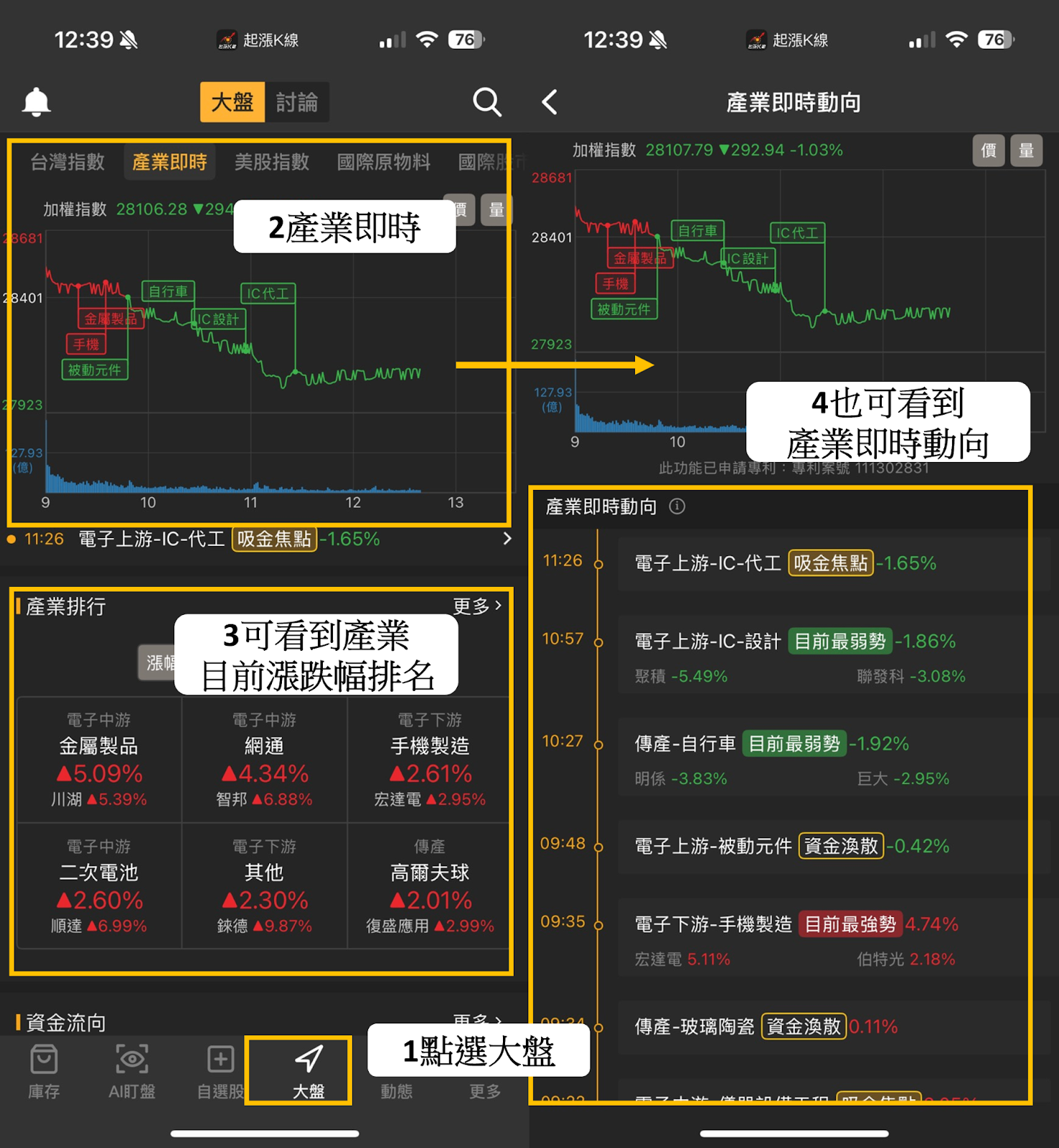可直接透過「產業即時」查看相對強弱、資金輪動方向。