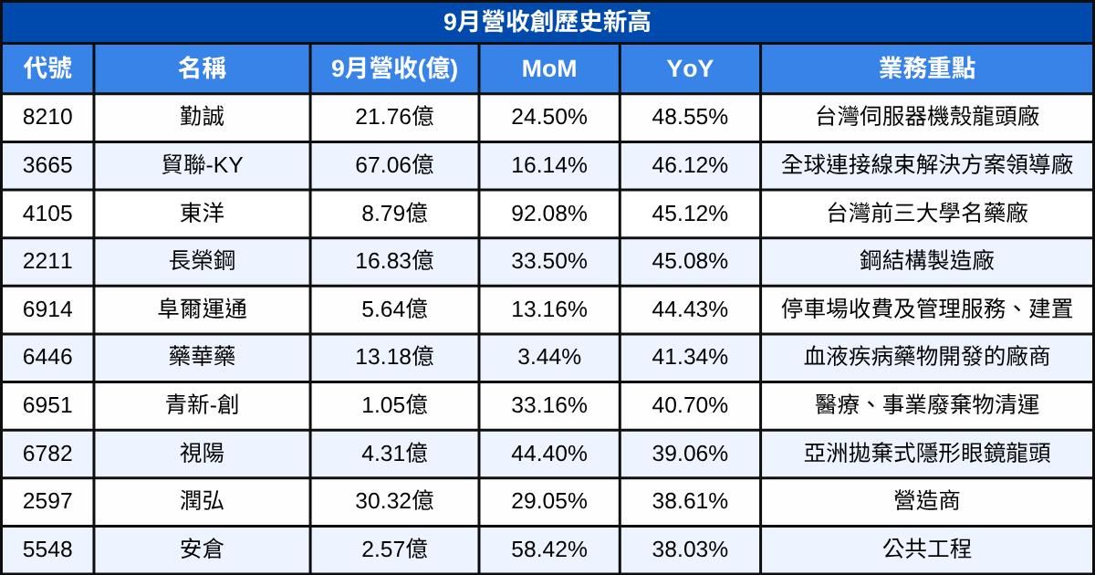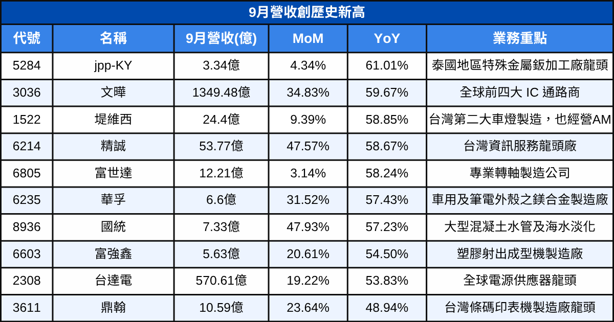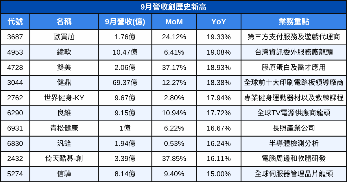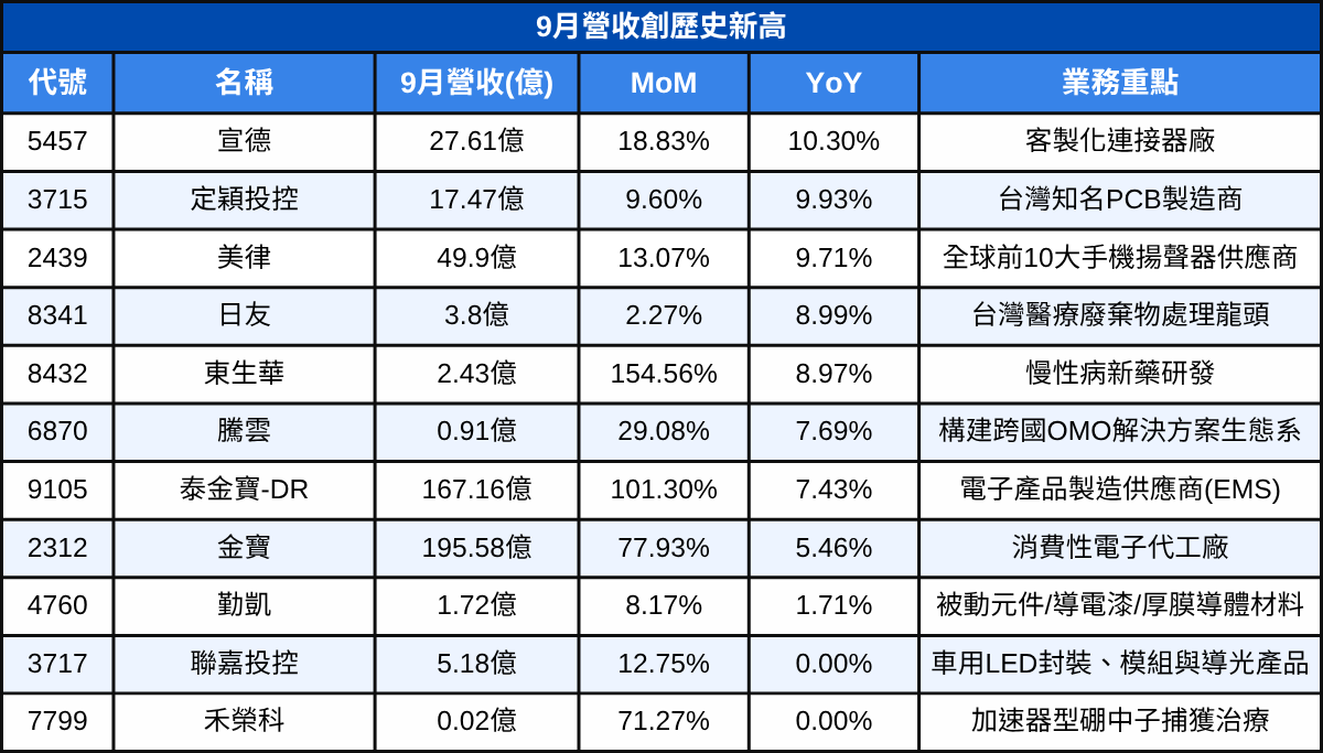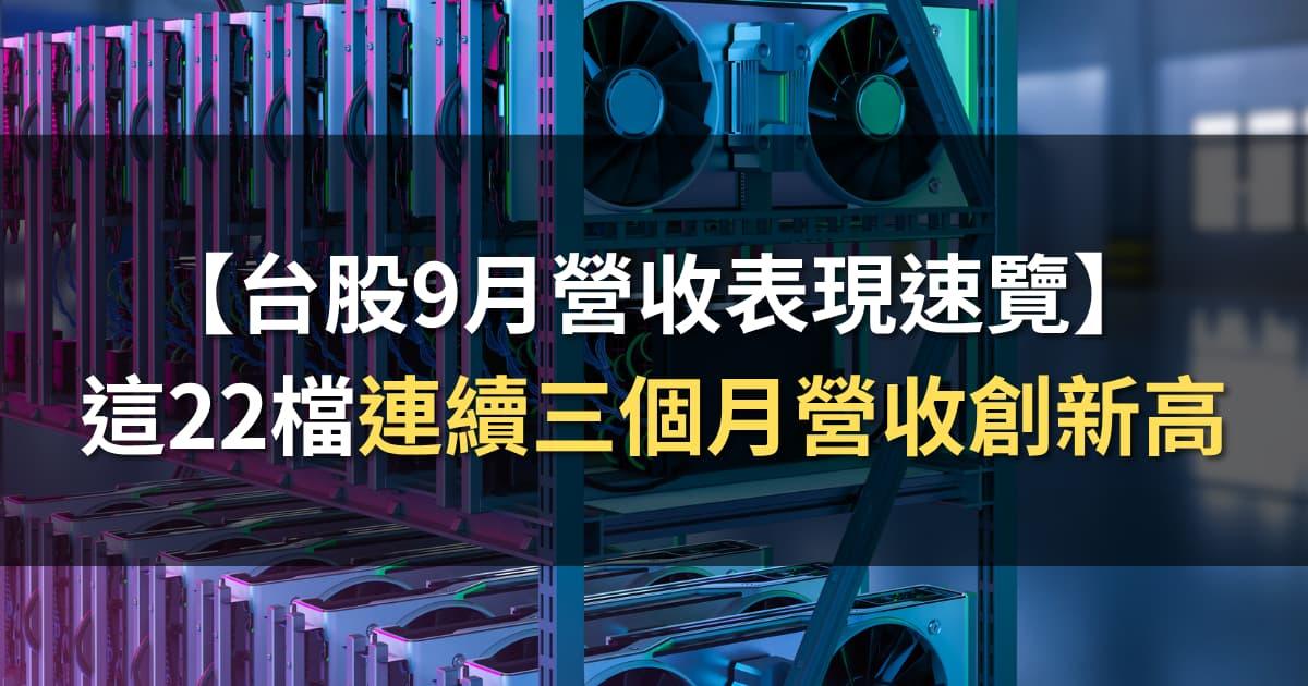 【台股9月營收表現速覽】這22檔連續三個月營收創新高!