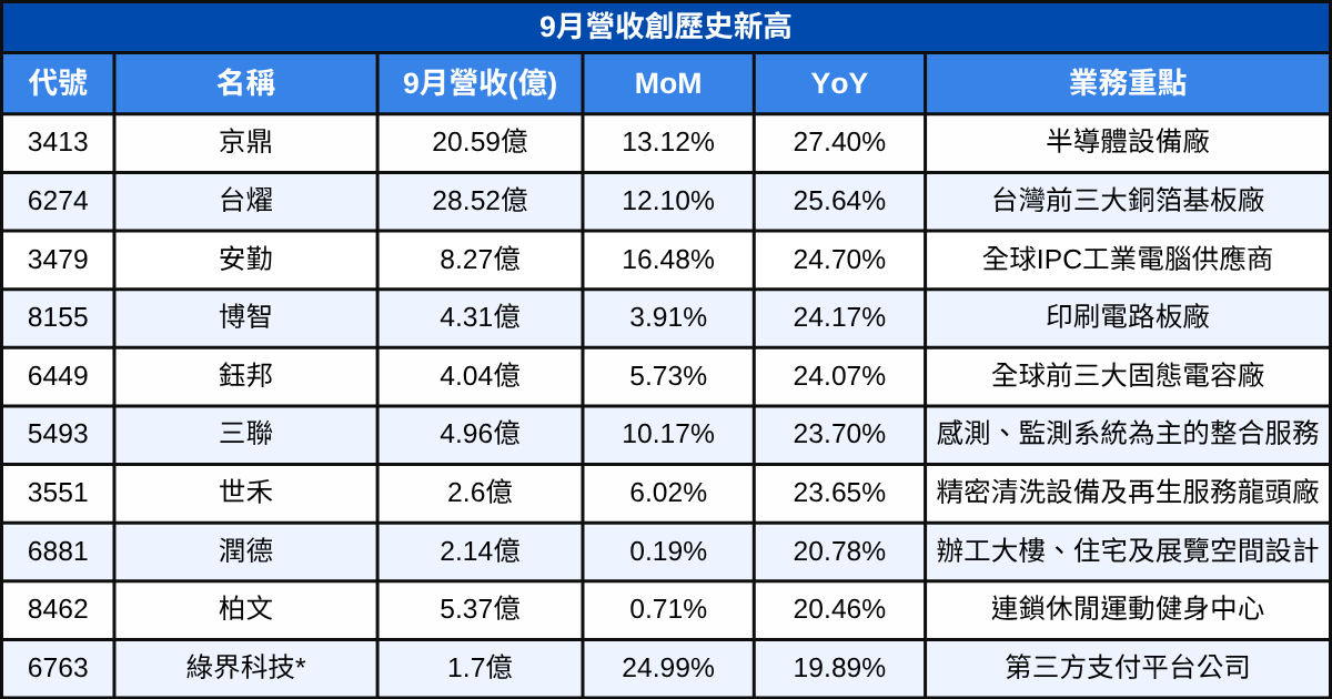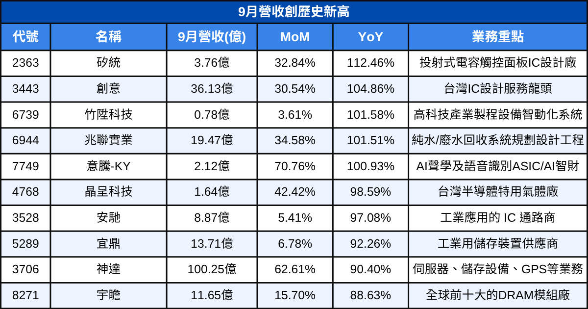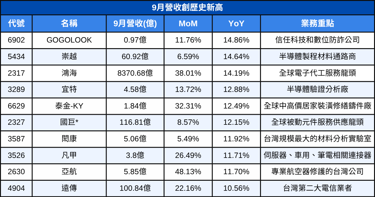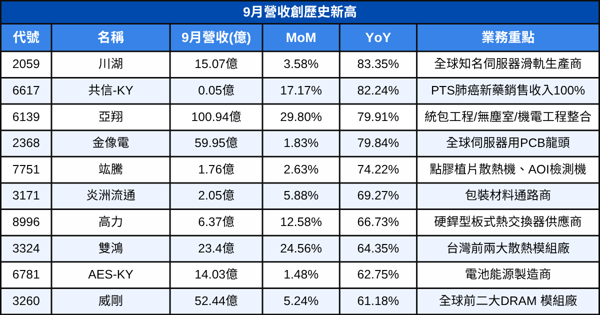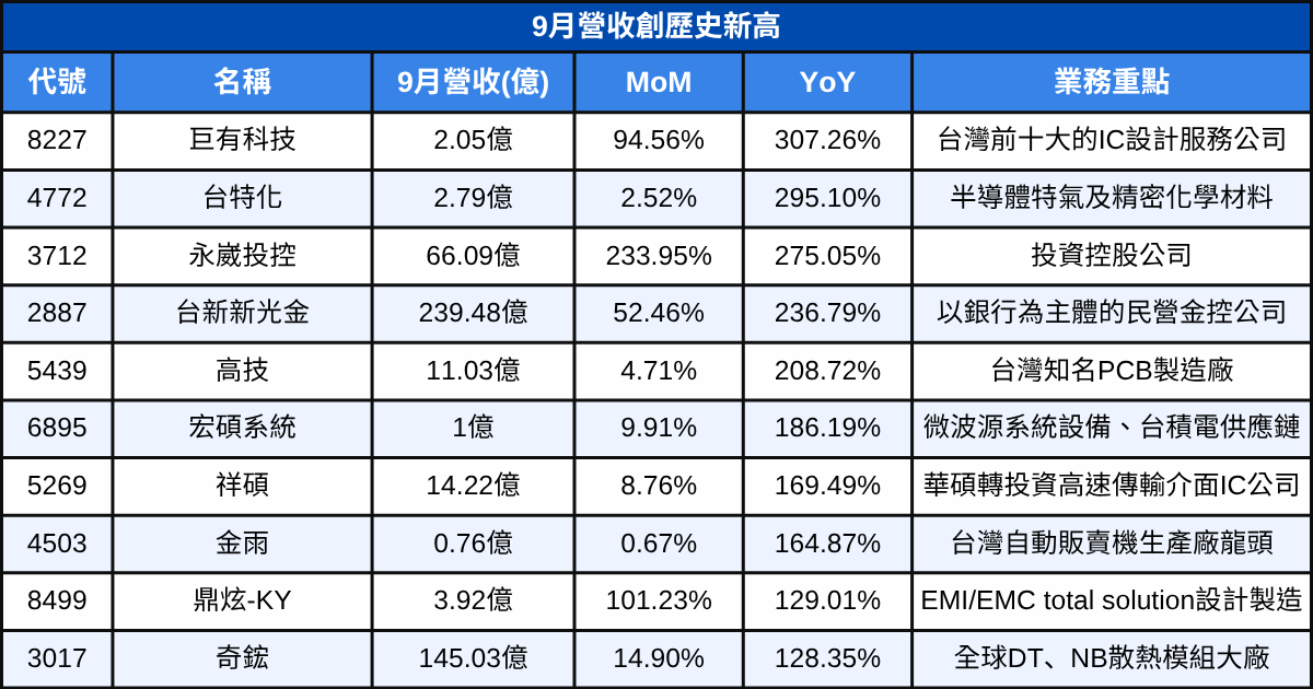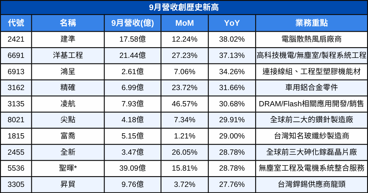 【台股9月營收表現速覽】這22檔連續三個月營收創新高!