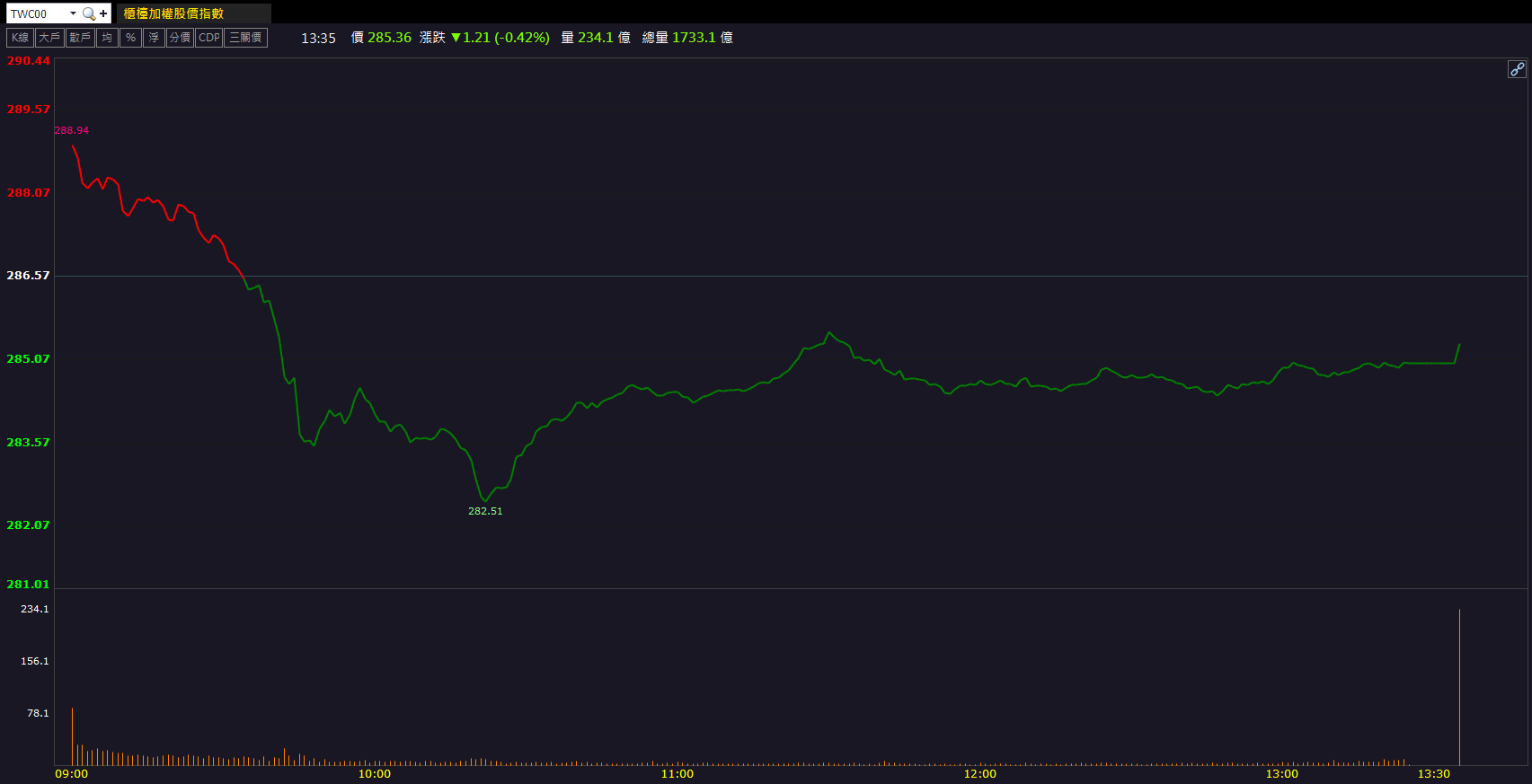 加權指數(昨日走勢)
