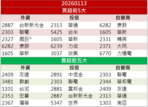 籌碼方面,受到外資青睞的個股有元晶(6443)、工信(5521)、聯合再生(3576)。而外資、投信皆看好的個股則有高力(8996)、國巨*(2327)、華新(1605),投資人可多加留意上述股票後續表現。