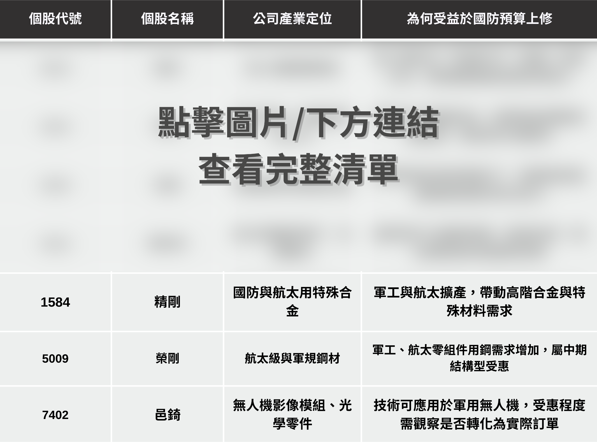 無人機整機與後勤、國防電子與材料供應鏈),以及無人機應用端延伸。一旦軍費擴張轉為實際專案,整機與維修最先反映、供應鏈接續受惠、應用端再由訂單驗證,因此被視為同一條國防主線下、不同層級的潛在受益者。