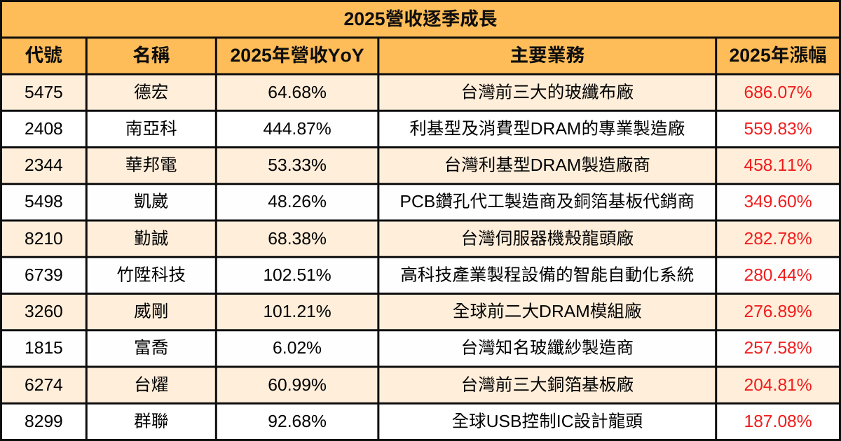 (圖:營收飆漲追蹤器、筆者整理/責任編輯:Tim)