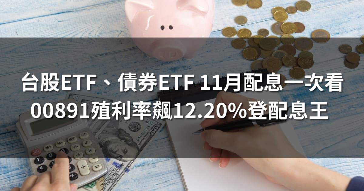 台股ETF、債券ETF 11月完整配息一次看 | 00891殖利率飆12.20%