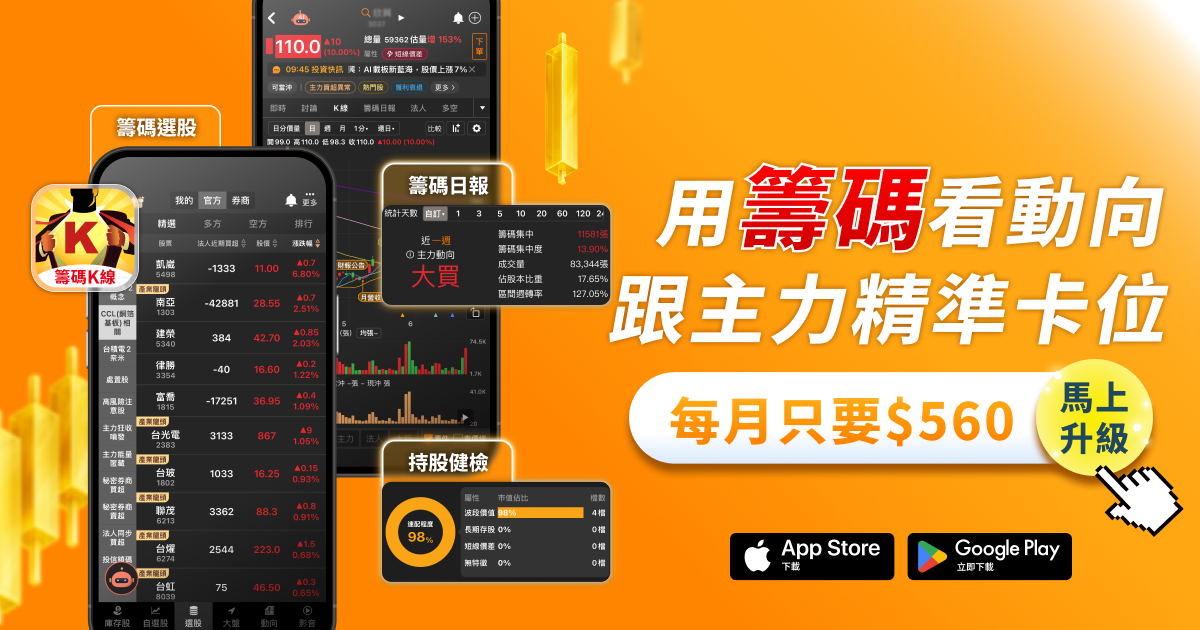 下載《籌碼K線》掌握市場最即時的資金焦點與概念股,不錯過任何行情!