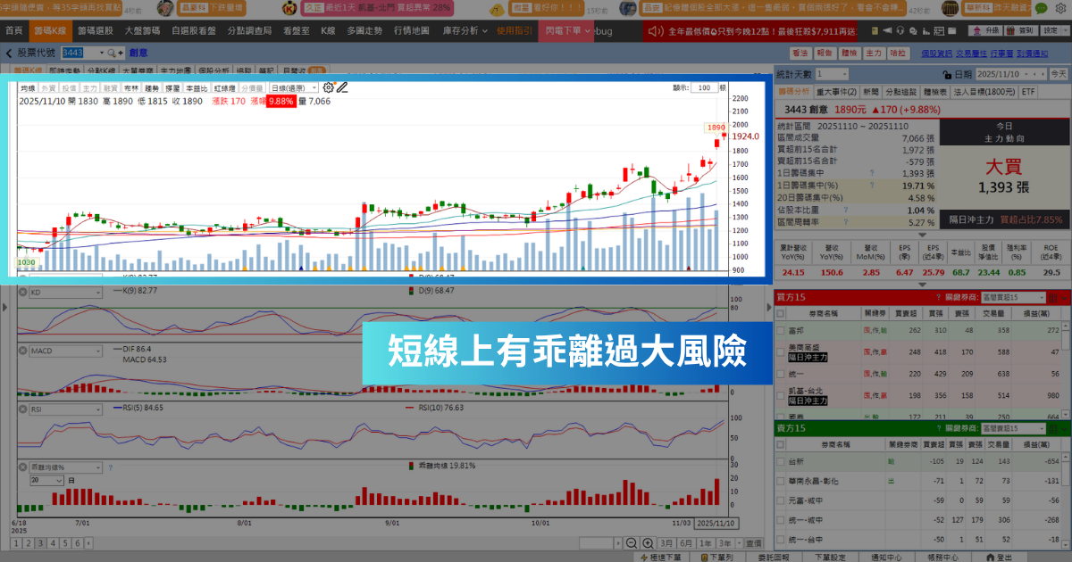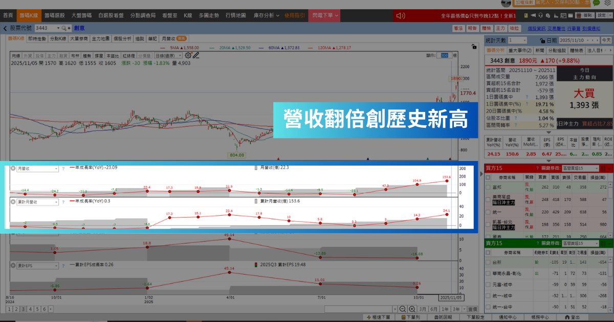 今天在美國政府有望打破僵局的帶動下,台股早盤大漲超過300點,一度收復28000元大關,其中「這一檔」在最新的10月營收表現,較去年同期大幅增加150.6%,創下歷史新高,加上傳出拿下Google的CPU大單的帶旺,近期股價突飛猛進。今天就跟著《籌碼K線 電腦版》一起來看看,是否還具備潛在的投資機會!