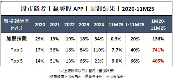 股市隱者|贏勢股 APP|回測結果|2025/11
