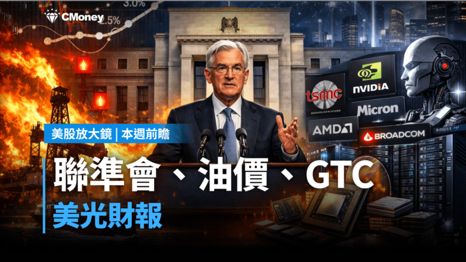 上週美股在油價、殖利率與中東局勢三重壓力下連跌三週,標普500單週下跌1.6%、道瓊下跌2%、那斯達克下跌1.3%,市場明顯從原本的「等降息」切換成「先避風險」。本週真正牽動方向的主線有三條:聯準會會後談話會不會重新定義降息時點、油價能否穩在百元附近以下,以及輝達 (NVDA) GTC 與美光 (MU) 財報能不能替AI族群重新找回主導權。若鮑爾語氣偏鴿、GTC釋出更明確的AI資本支出訊號,科技股有機會先止跌;但若油價續漲、聯準會強調通膨風險,修正時間恐怕還會拉長。