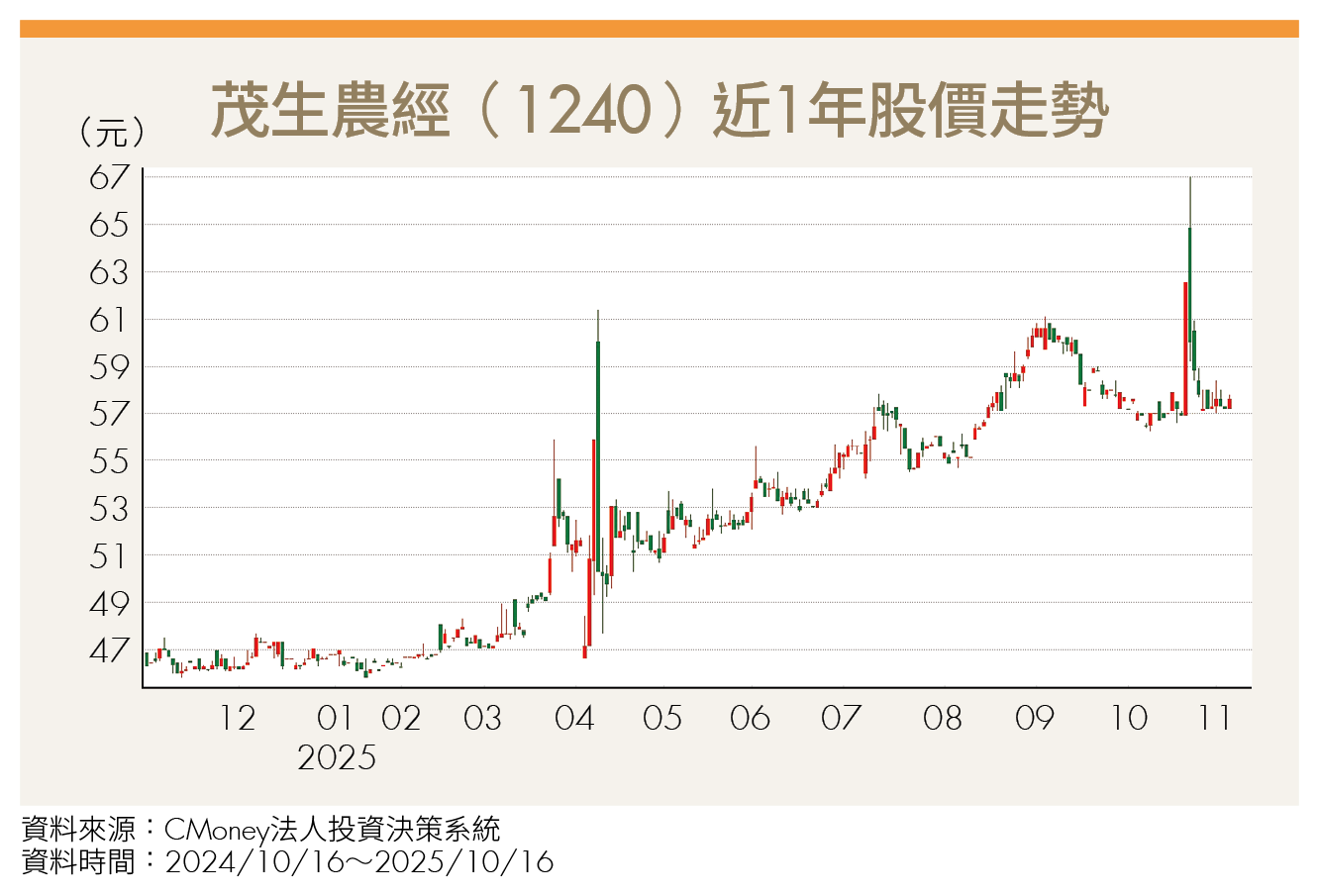 台股近期熱鬧滾滾,但資金多集中在半導體產業鏈,傳統產業中仍有不少股票價值被低估的優質好股。上櫃公司茂生農經(1240)營運穩定成長,今(2025)年上半年每股獲利(EPS)達2.5元,比去年同期的1.91元大幅增加31%,全年度營收、獲利展望樂觀,明年股利亦值得期待,但是目前股價似仍未反應企業價值。