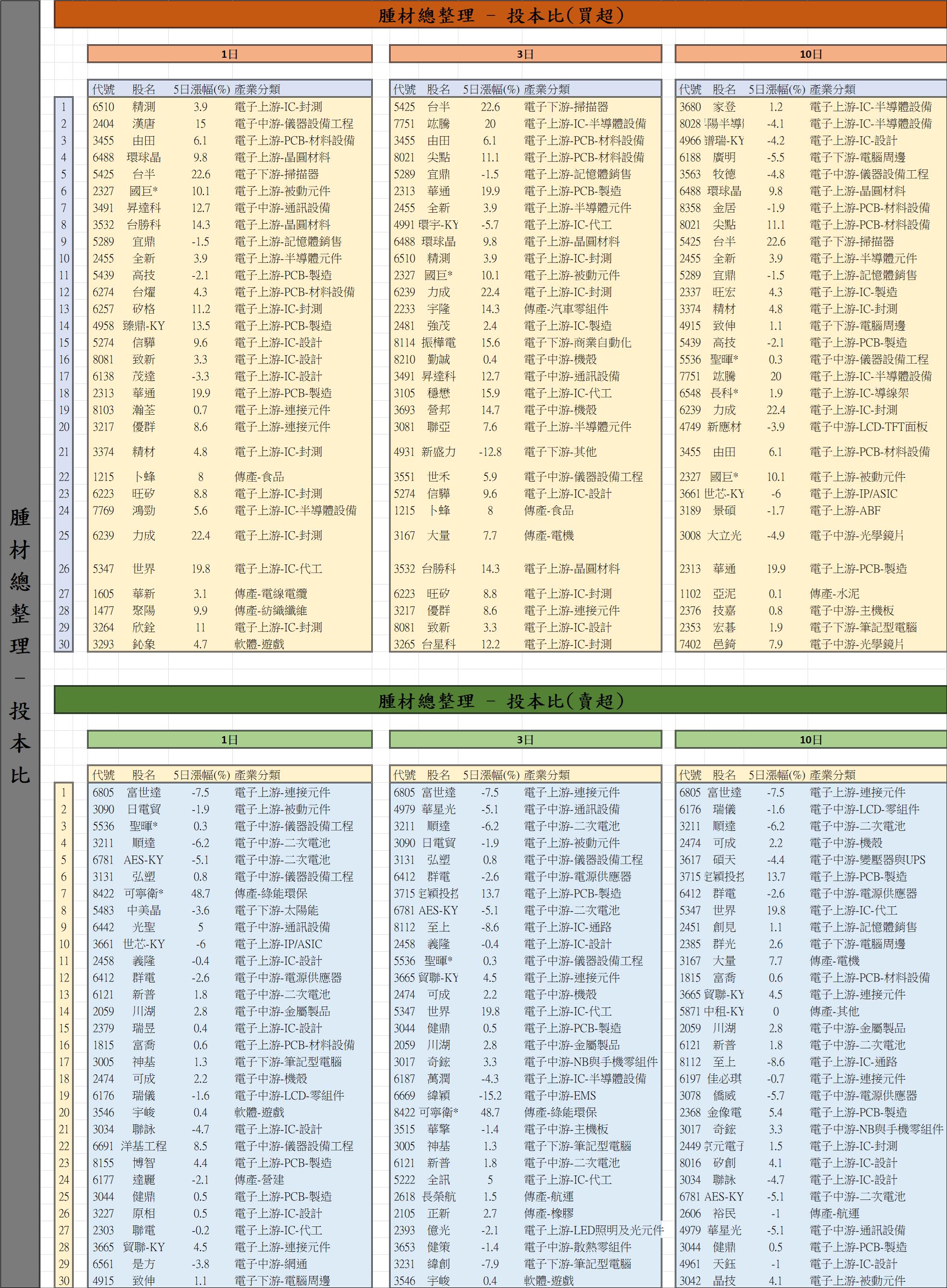 【投本比】1日/3日/10日 賣比