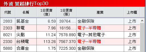 【上市-外資動向】