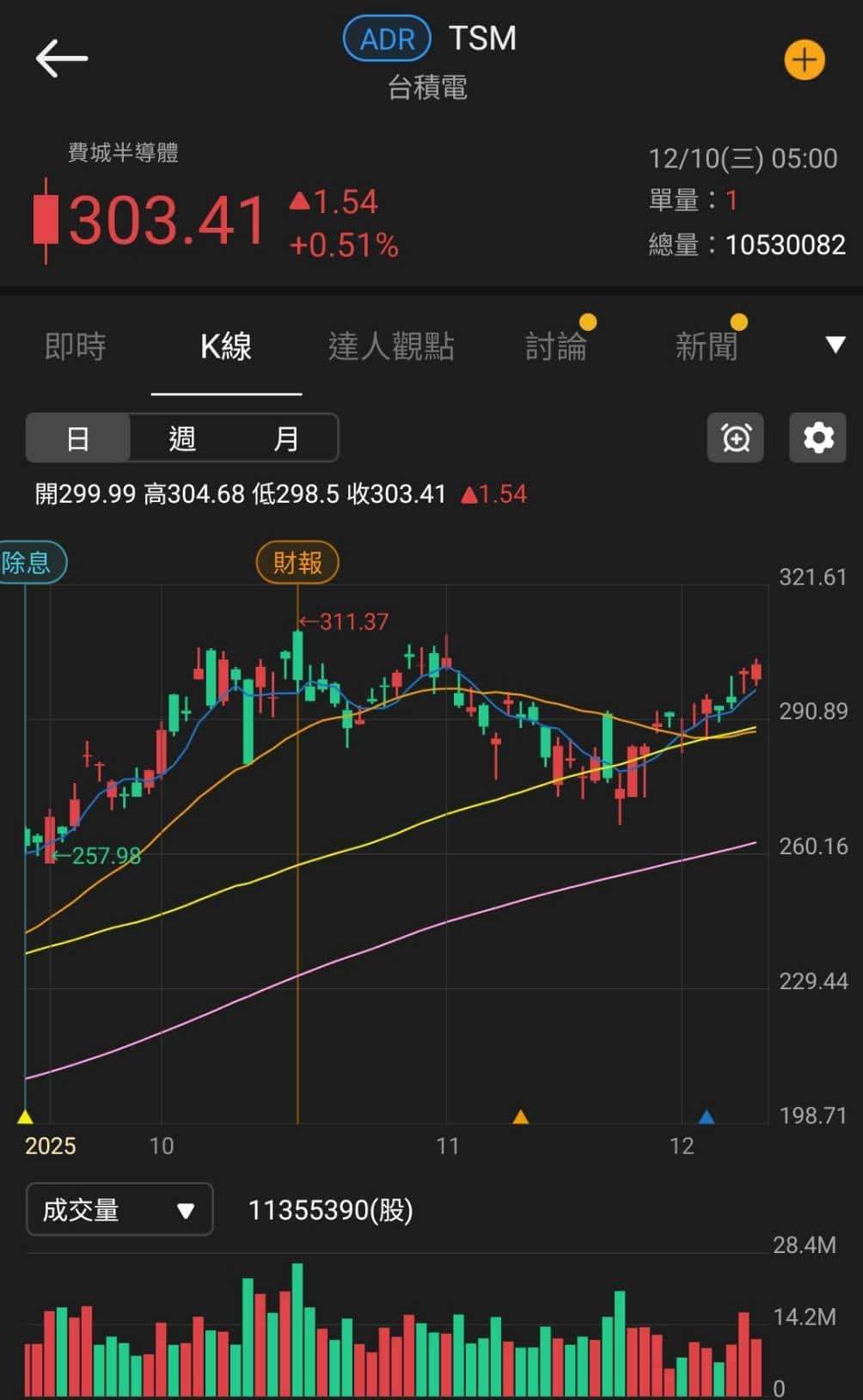 (台積電ADR日K 資料來源:美股資訊就看美股K)(註 : 以上僅為數據揭露,無推介買賣之意,投資人須自負交易風險)