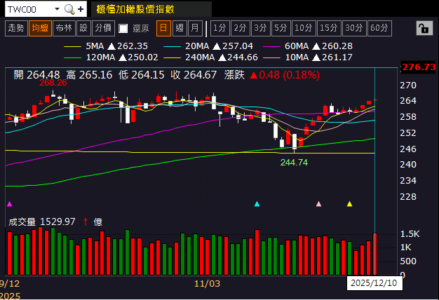 (加權日K 資料來源:籌碼K線)(註 : 以上僅為數據揭露,無推介買賣之意,投資人須自負交易風險)