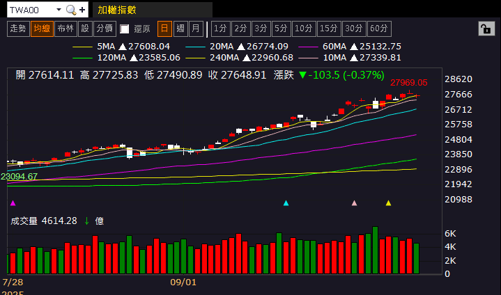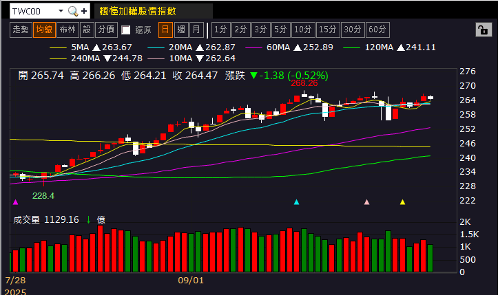 (加權日K 資料來源:籌碼K線)(註 : 以上僅為數據揭露,無推介買賣之意,投資人須自負交易風險)