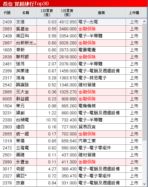【上市-投信動向】