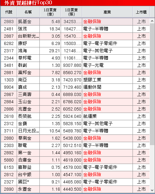 【上市-外資動向】
