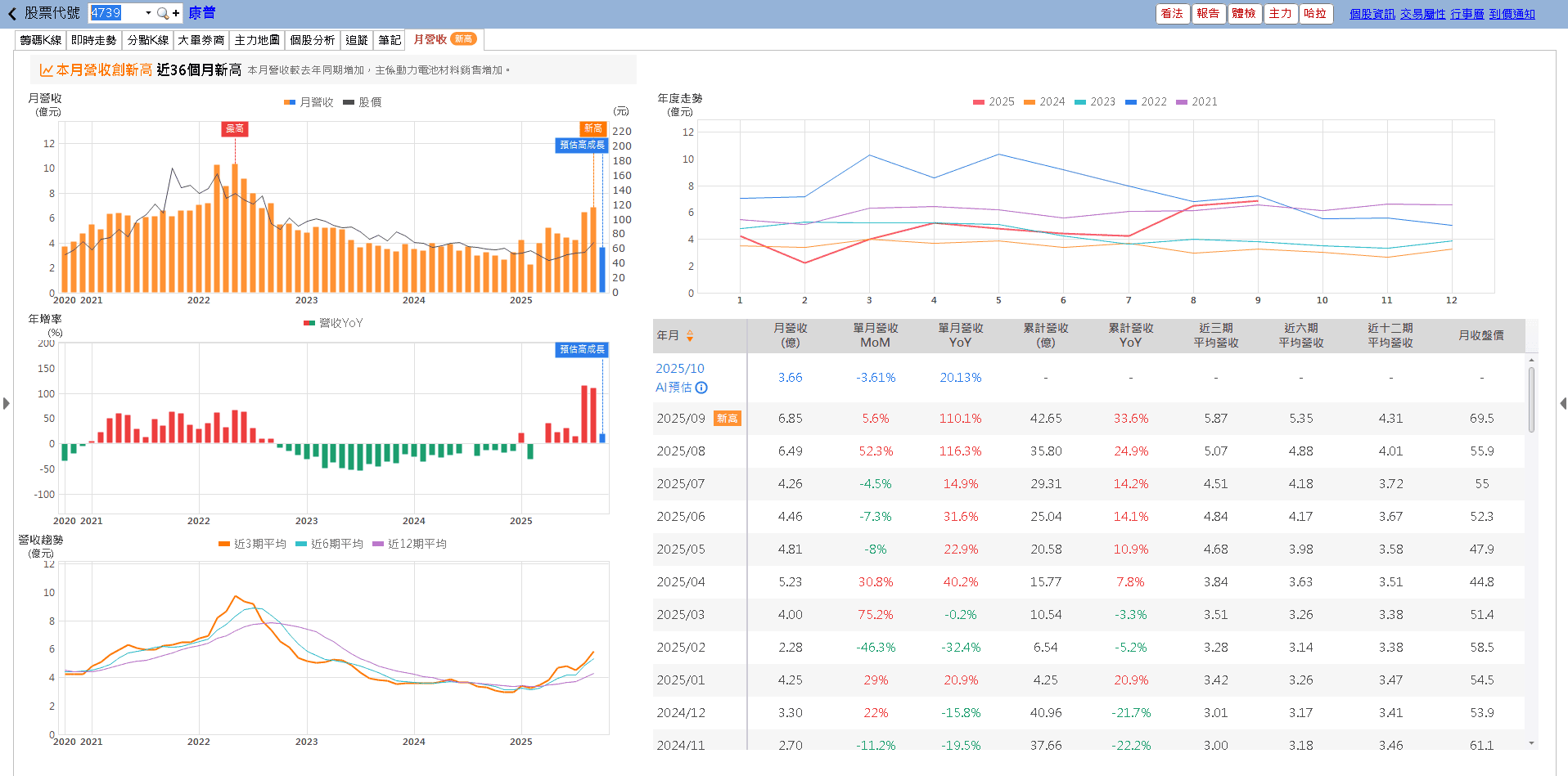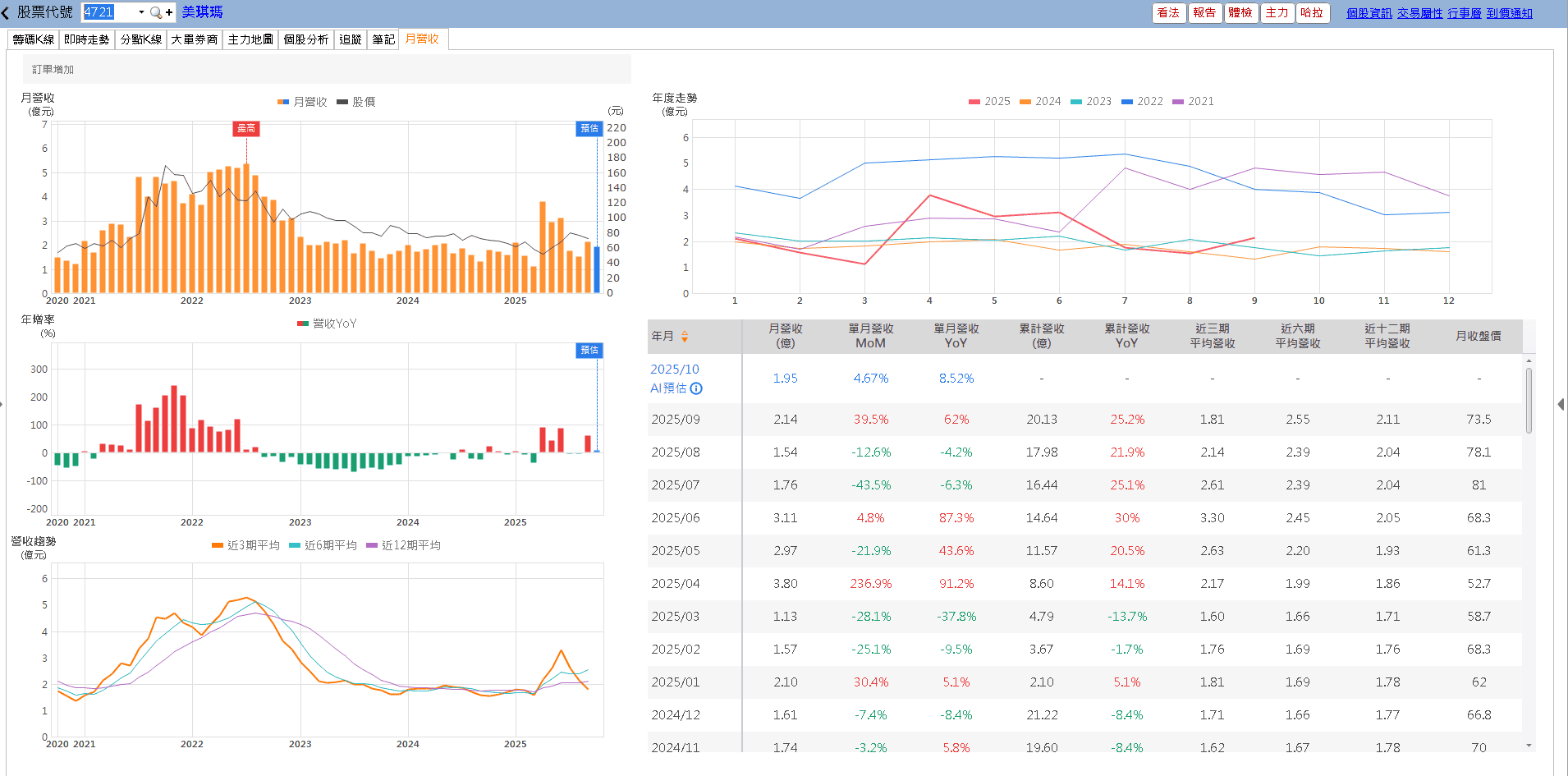 美琪瑪(4721)9月營收2.14億,月增39.49%、年增61.99%,3Q25營收5.48億,季減44.39%、年增14.03%,