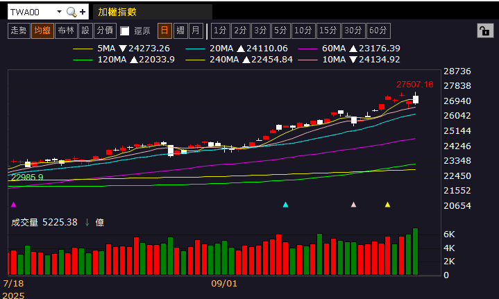 (加權日K 資料來源:籌碼K線)(註 : 以上僅為數據揭露,無推介買賣之意,投資人須自負交易風險)