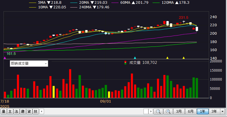 整體而言,市場持續等待川普(Donald Trump)政府向最高法院提出上訴,裁定關稅的風向(11月初),以及美國政府關門動向,昨日美股四大指數皆收漲,道瓊、S&P500尚未收復月線,那指爭奪月線,費半月線有守;