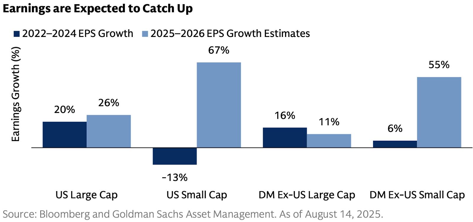 圖一、高盛預估未來一年的小型股獲利即將大增,資料來源:Goldman Sachs。