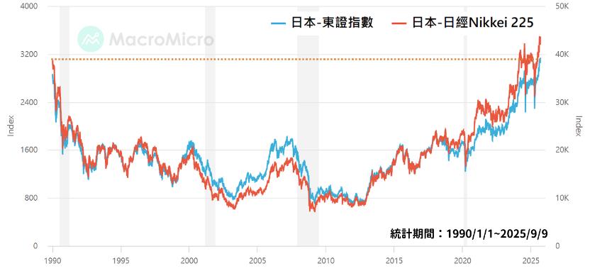 而且這個表現並不是曇花一現,日本股市在這1-2年已經正式揮別過去日本自1990年代泡沫崩盤之後的陰影,已經正式突破1990年代高點。