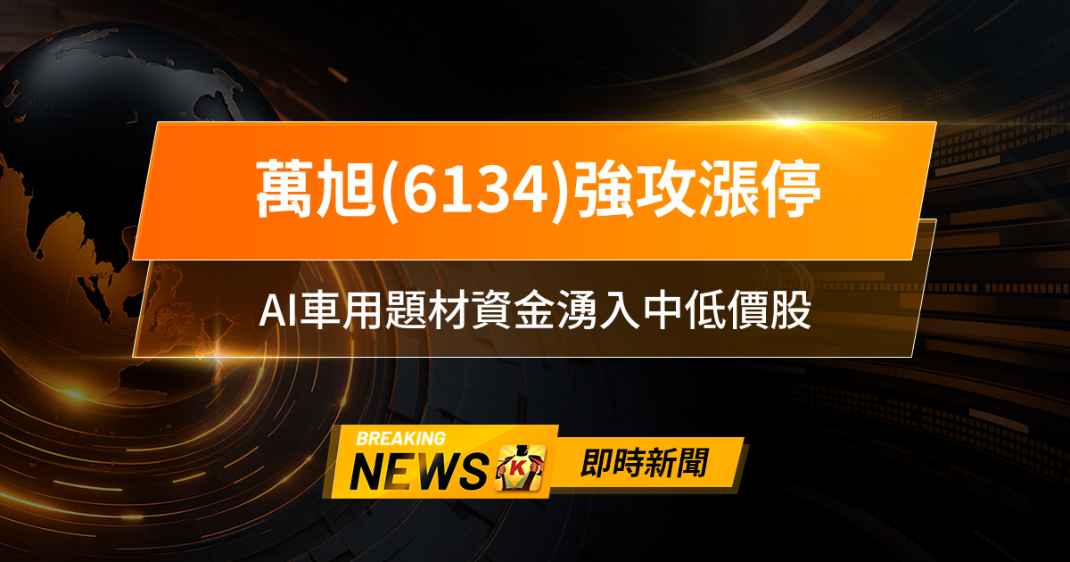 【09:28 即時新聞】萬旭(6134)強攻漲停,短線均線翻揚+主力回補,AI車用題材資金湧入中低價股